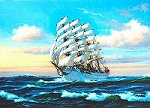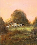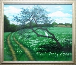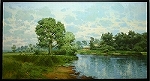 風景画を得意とし、EU各国にフアンが多い。 この様な横長の絵を飾ると部屋が広く感ぜられ、空と水が心を癒してくれる。