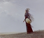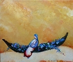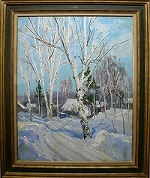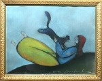 この作品は1991年ソ連邦崩壊前に描かれ、体制に抑圧されているピエロが首をうなだれじっと耐えている姿であろう。美しいブルーの夜空にポツンと見えるのは希望の星であろうか。