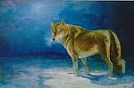ウランバートル美術大学、スリコフ美術大学(モスクワ)。零下何度だろうか。凍てつく夜の狼の吐く息が白い。勇気を貰える絵である。