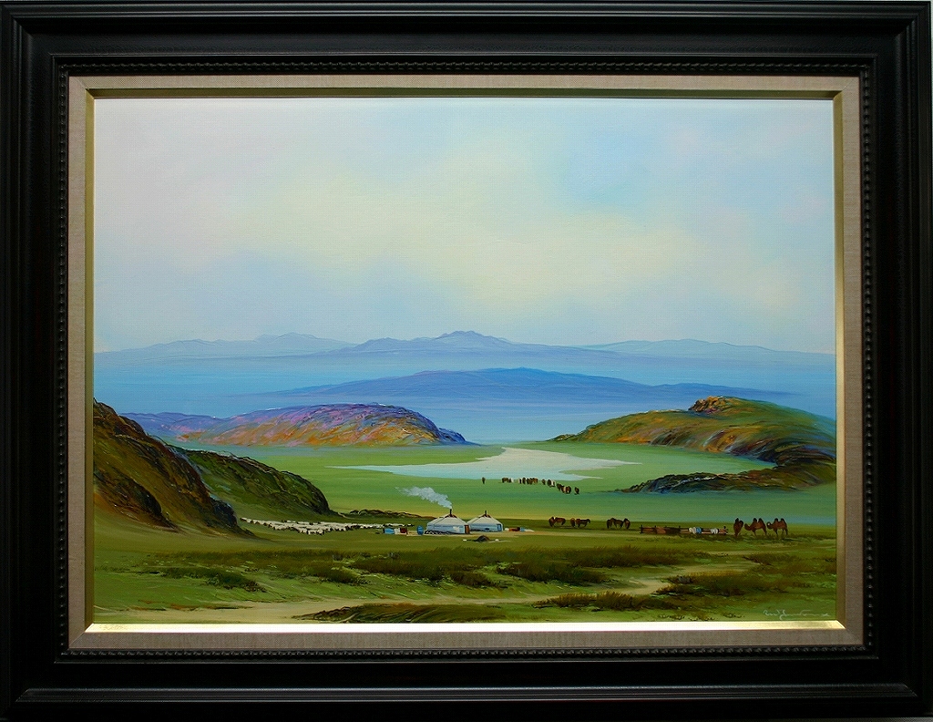 雄大なモンゴルの風景を力強くみずみずしいタッチで描く。最高の栄誉である北極星章、モンゴル国芸術功労賞受賞。