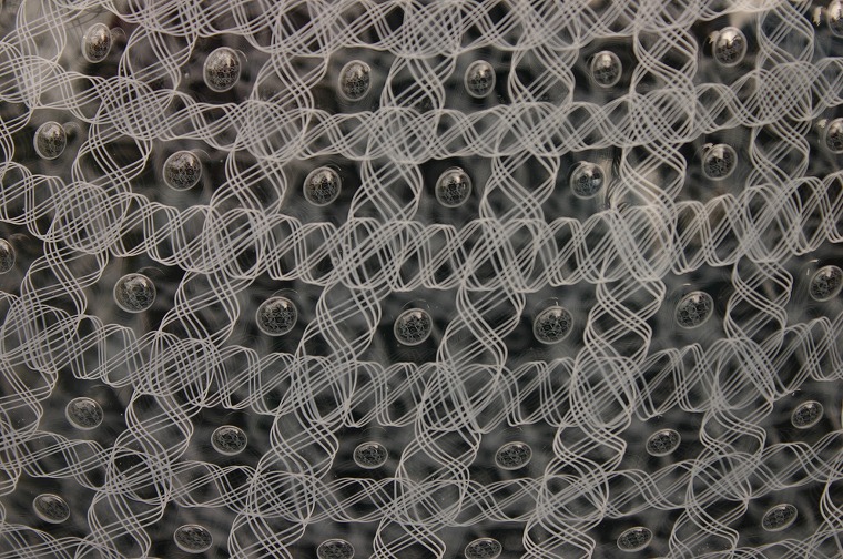 どの様に作るのか?不思議な技法によって、レースと気泡を封じ込めた作品。