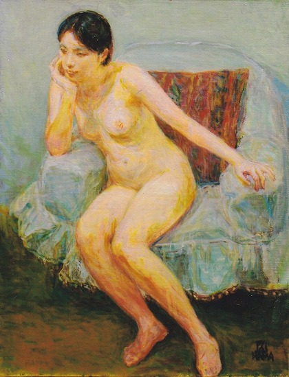 先生は裸婦を描くことを得意とし、色彩豊かに輝く作品は多くのファンを魅了しております。